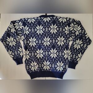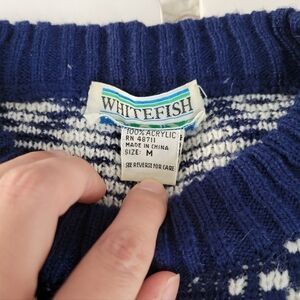 Vintage Whitefish Bay Blue and White Christmas Holiday Pullover Knitted Sweater