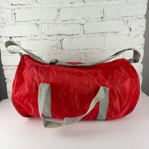 Vintage Whitey's Ice Cream Red Nylon Duffel Bag. Vibrant red duffel bag featuring the Whitey's Ice Cream logo. Equipped with sturdy gray straps. Measurements approximately 17” X 10”.