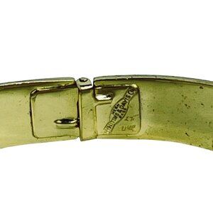 This exquisite vintage Whiting and Davis hinged bracelet, featuring a gold tone finish and a unique buckle design. Perfect for adding a touch of elegance to any outfit. A rare find for collectors and fashion enthusiasts alike.