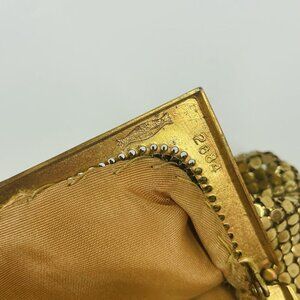 Vintage Whiting & Davis #2684 gold tone metal mesh coin purse kiss clasp (B3)