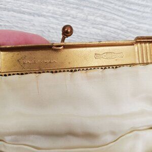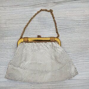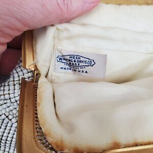 Vintage Whiting & Davis 30's/40's gold and cream enameled mini handbag