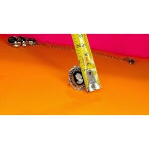 Includes matching cameo necklace, adjustable ring, & pair of clip-on earrings