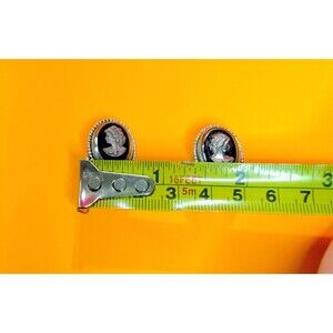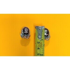 Clip-on earrings, each with matching cameo, ornate silver tone accents