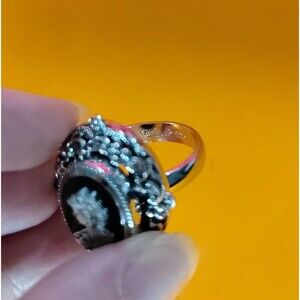 Ring is adjustable & features the same cameo medallion, beautifully ornate filigree frame, fits approximately size 7