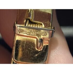 Vintage yellow gold bangle hinged 7.5" women's bracelet. Stamped with Whiting & Davis Co Mesh Bags below the hinge. Stored in a smoke-free, pet friendly home.