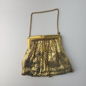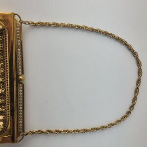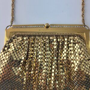 Vintage Whiting & Davis Gold Mesh Evening Bag Clutch Purse Rhinestone Frame