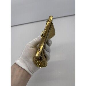 This original vintage Whiting & Davis brand Gold tone Clutch Purse has beautiful mesh of metal sequin and provides an elegant retro look. This bag is perfect for a cocktail type of occasion, a wedding, prom or eveningwear look. Made in the United States, this purse exudes elegance and sophistication, making it a timeless accessory for any outfit. The brand's history and attention to detail reflect a classic and luxurious style that is sure to make a statement. It is a great compact type of size and we include photos together with a ruler to show the size which is about 5.5 inches X 4 inches.