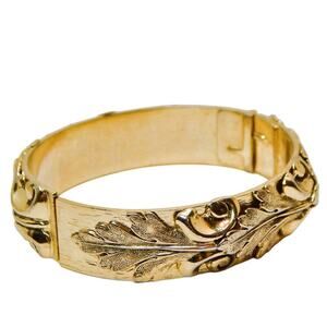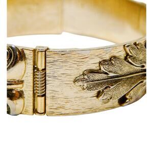 Vintage Whiting Davis Hinged Bangle Art Nouveau Leaf Relief Bracelet