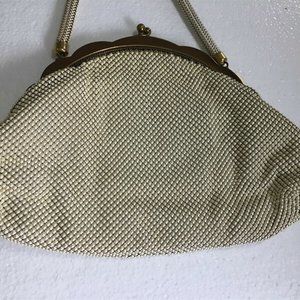 vintage Whiting & Davis mesh purse kiss lock gold frame...ivory cream mesh...made in USA....vintage preowned gently worn....approx 9" wide 6" high
