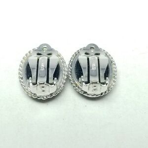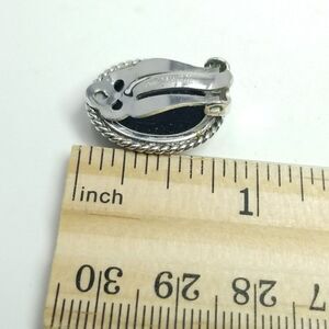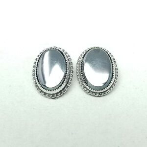 Vintage Whiting & Davis Oval Silver Tone Bezel Faux Hematite Clip On Earrings