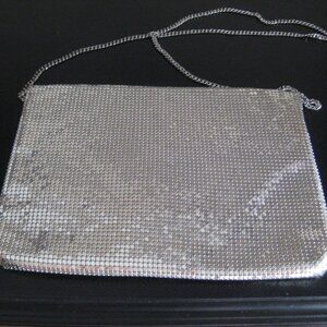 Vintage Whiting & Davis Silver Mesh Envelope Clutch Purse with Chain Strap