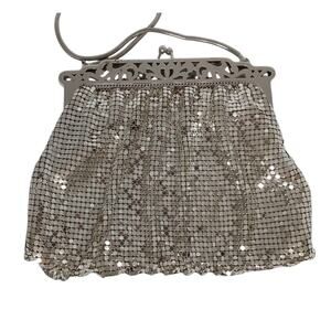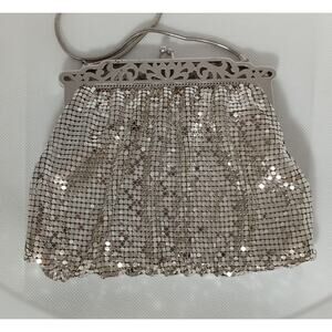 Vintage Whiting Davis Silver Metal Mesh Purse Evening Handbag