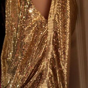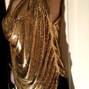 Vintage Whiting & Davis Sparkling Sexy Gold Drape Top Sz. S