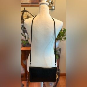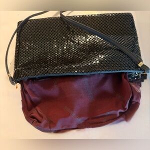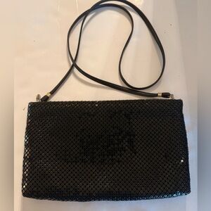 Vintage Whiting and Davis Black Mesh Evening Purse Leather Strap Gold Hardware