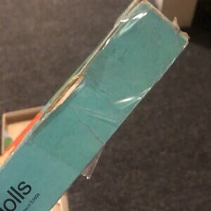 A little wear and tear from years of play, clothes are cut out and box is in great condition with a few minor flaws.