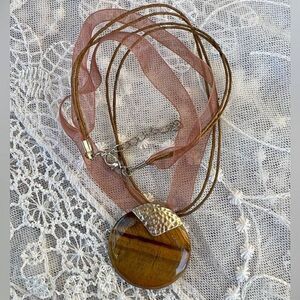 Listing is for pendant, but I’ll include a new 18” golden brown ribbon cord with silver tone lobster clasp and 1.5” extender chain.