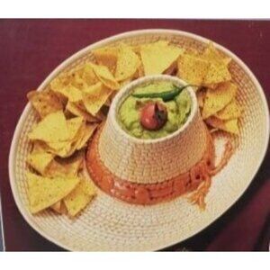chips and dip, chips and salsa, whimsical, vintage, ceramic, party supplies, guacamole bowl, southwestern, mexican, western, hat, 1980's