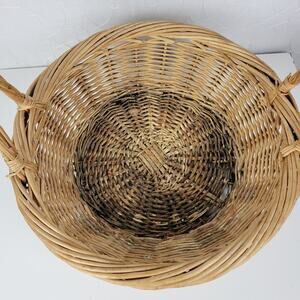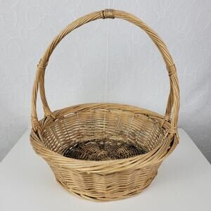 Vintage Wicker Basket Tan Natural Woven Rattan Round Handle Farmhouse Decor