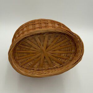 Crafted with a nostalgic touch, this Vintage Wicker Bunny Rabbit Basket is a charming addition to any Easter celebration. The medium-sized basket, finished in a warm brownish/tan hue, features a uniquely woven pattern with striking red eyes and bamboo ears that lend an eclectic charm. Ideal for both functional use and decorative display, the basket pairs a practical shape with an American style, offering a quaint and rustic aesthetic. Measuring 9 inches in length, 10 inches in height, and 7 inches in width, this lidded treasure holds a surprise for those who appreciate the whimsy of handcrafted artistry.