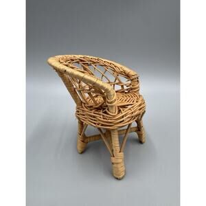 Vintage Wicker Dollhouse Furniture Chair & Table Set