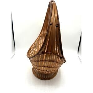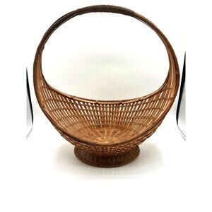 Vintage Wicker Gondola Basket Arched Handle Handmade