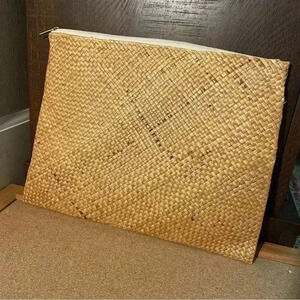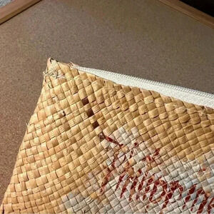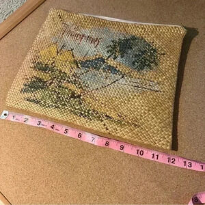 Vintage Wicker Handbag Handmade Philippines Landscape, Clutch Beige Straw