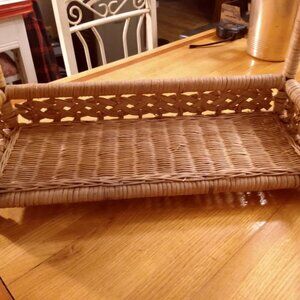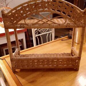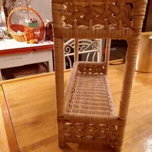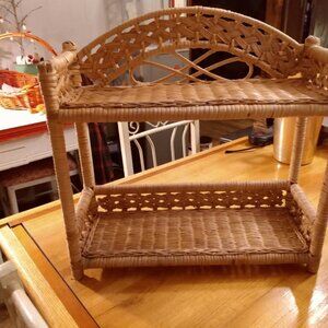 Vintage Wicker Rattan Hanging or Standing Shelf 17" x 18"