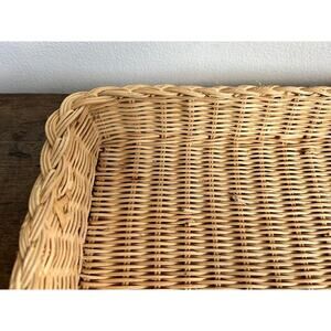 Vintage Wicker Rectangular Serving Tray with Handles | Cottagecore