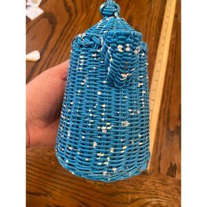 This uncommonly cute wicker coffee pot is perfect for that farmhouse nook that begs for a display; especially next to the enamel of the same look. Use it for artificial foliage or flowers or maybe a small collection of some sort. It mimics the blue enamel splatterware of yesteryear.