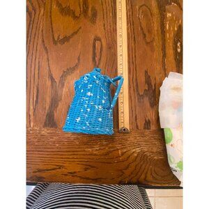 Vintage Display Wicker Blue Splatterware Mini Coffee Pot