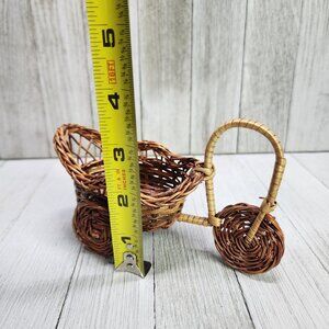 Vintage Wicker Tricycle Carriage Planter Bamboo Rattan 5'' Decorative