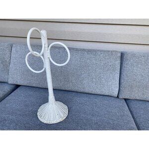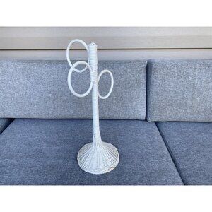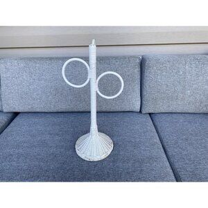 Vintage Wicker White Guest Fingertip Towel Holder Stand Bathroom White Boho...appro 16" high vintage preowned see all pictures