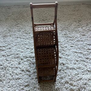 Vintage Wicker Wine Holder Rack/ Bent Bamboo and Rattan 5 Bottle Wine Rack with