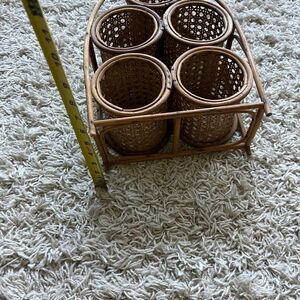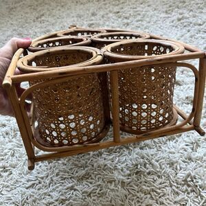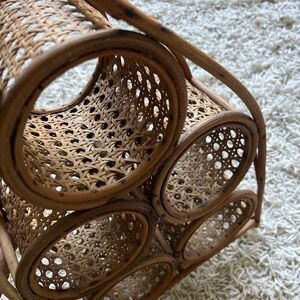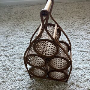 Vintage Wicker Wine Holder Rack/ Bent Bamboo and Rattan 5 Bottle Wine Rack with Top Handle/Vintage boho wicker bottle holder