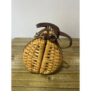 Vintage Wicker Woven Purse Boho Cottagecore Brown Leather Straps Womens handbag