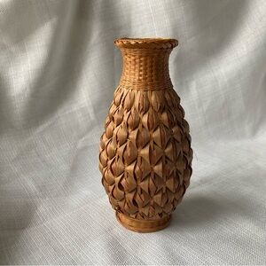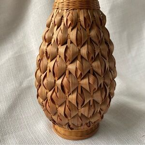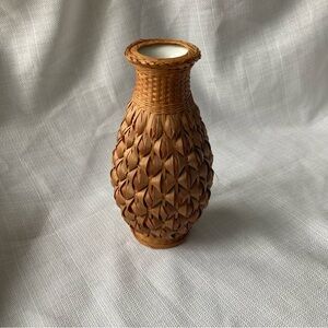Vintage Wicker Wrapped White Ceramic Bud Vase!