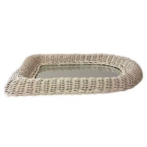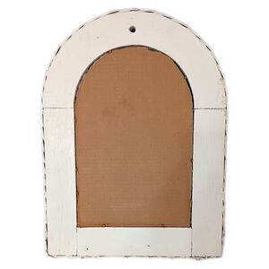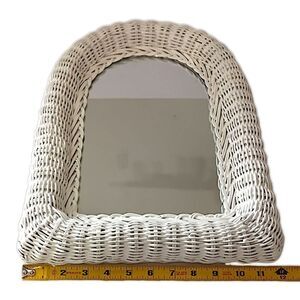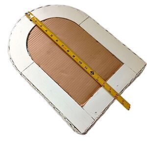 Vintage Wicker Arched Mirror Accent Wall White Boho Cottage Shabby Victorian. Condition is pre-owned with no chips or cracks. Measures about 16" x 12". Unbranded. Boho Chic, Bohemian, cottage, beach house, shabby, patio, Victorian, MCM. Please see all photos for detailed condition.