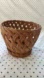 Unique vintage plant holder / storage basket with a multi-scalloped weave & tightly woven sturdy bottom. Natural tan / brown color typical of mid-century vintage reed/bamboo work. Perfect for display, serving, storage or as a rustic accent piece in farmhouse / eclectic décor