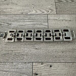 Vintage Wide Chunky Silver Tone Confetti Lucite Link Bracelet Collector’s Item