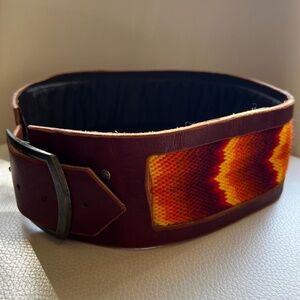Vintage Wide Embroidered Brown Leather Southwestern Style Corset Belt