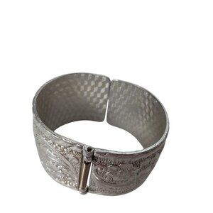 Vintage Wide Engraved Silver Tone Hinged Cuff Bracelet Bangle Statement Western