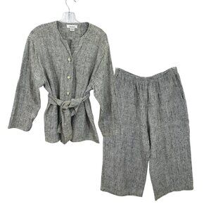 Vintage Wide Leg Trouser Pants and Belted Jacket Black White Women M, SANGAM
