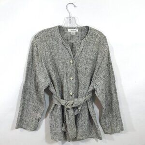 Jacket is lightweight with button front/ Removeable belt/ Pockets/Side seam splits