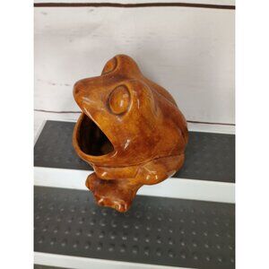 vintage frog planter, ceramic decor, unique plant holder, whimsical pottery, brown frog, decorative frog, gardening decor, small planter, frog sculpture, retro home decor, frog ornament, home garden accessory, indoor outdoor planter