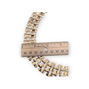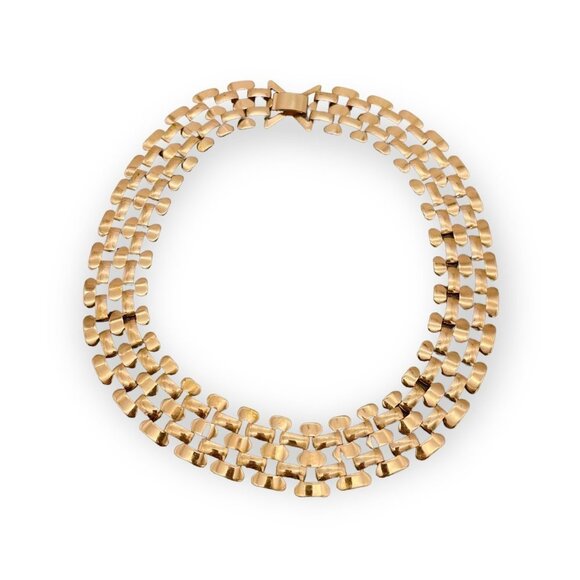 Vintage Wide Open Panther Link Choker Necklace Gold Tone Fold Over Closure 18 in