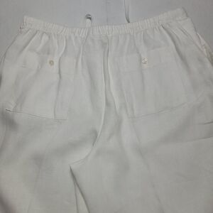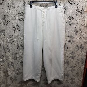 Vintage Wide legged 100% linen pants. White. Drawstring waist. Button fly. 14