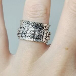 Vintage Wide Spinner Ring, Silver Tone Embossed Band, Size 6, Stacking Estate