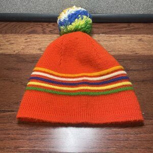 Vintage Wigwam Pure Virgin Wool Striped Bobble Winter Knit Ski Skiing Hat Beanie