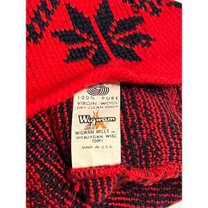 Vintage Wigwam Red Vintage Wool Beanie blue snowflakes