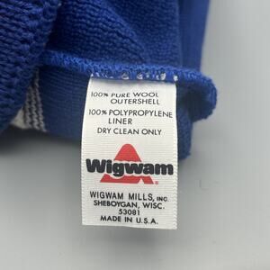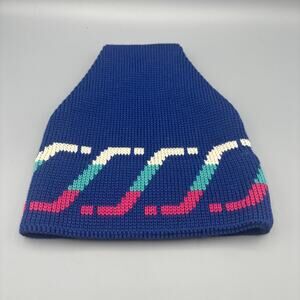 Vintage Wigwam Wool Beanie One Size Blue Stripe Geometric U.S.A.